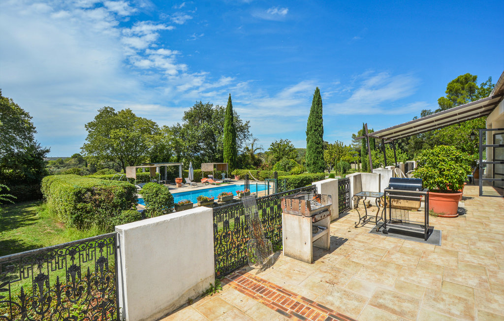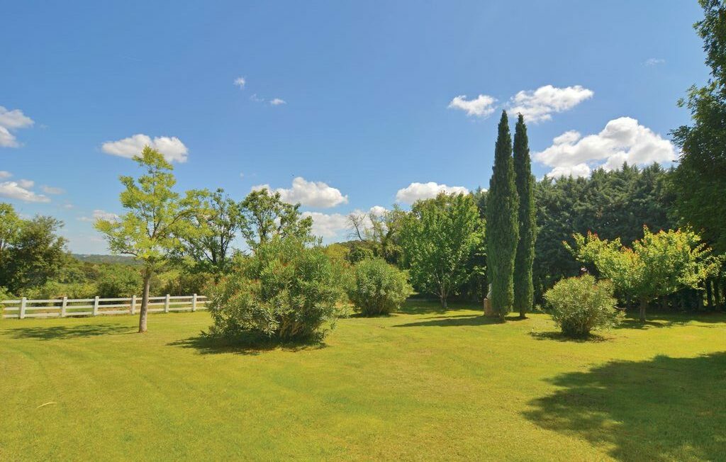 De vastes pelouses brodées de cyprès et d’arbres méditerranéens dessinent un paysage structuré et apaisant. L’espace respire, les perspectives s’ouvrent, la nature encadre la villa élégance.